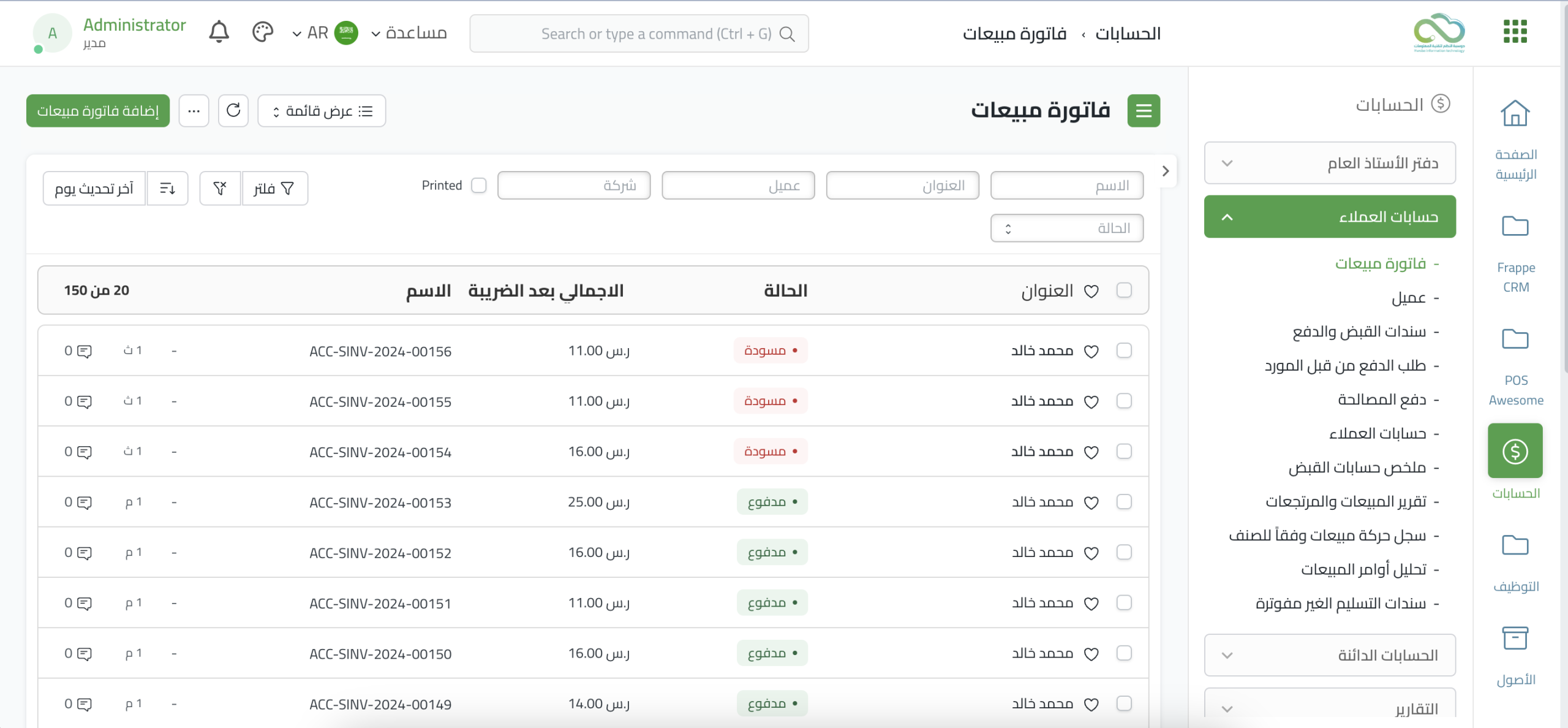 يتكامل النظام مع جميع وحدات الأعمال الأخرى، مما يوفر رؤية شاملة للأداء المالي للمؤسسة في الوقت الفعلي. يدعم النظام الفوترة الإلكترونية المتوافقة مع ZATCA، ويوفر تقارير مالية دقيقة تساعد في اتخاذ القرارات الاستراتيجية.